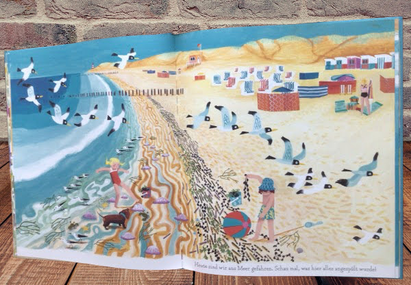 In wundervollen Bildern erzählt Noelle Smit genau von so einem tollen Tag am Meer. Jede Doppelseite lädt zum Abtauchen, Entdecken und Verweilen ein und lässt all die wundervollen Momente erleben, die so ein Strandtag mit sich bringen kann. Vom ersten Entdecken, was das Meer alles an den Strand gespült hat, von in die Wellen springen, tauchen, schwimmen und schnorcheln, von einem kurzen Picknick und Sandburgen bauen von Verstecken spielen zwischen Strandkörben, von einer kleinen Eiserfrischung und Ebbe und Flut, die den Strand so unterschiedlich erleben lassen.